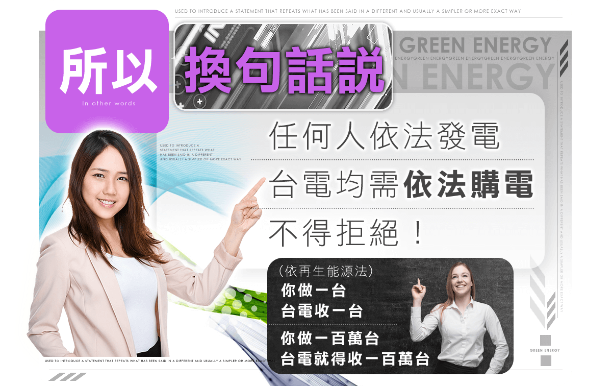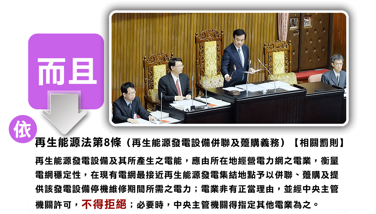 任何人依法發電 台電均需依法購電 不得拒絕!